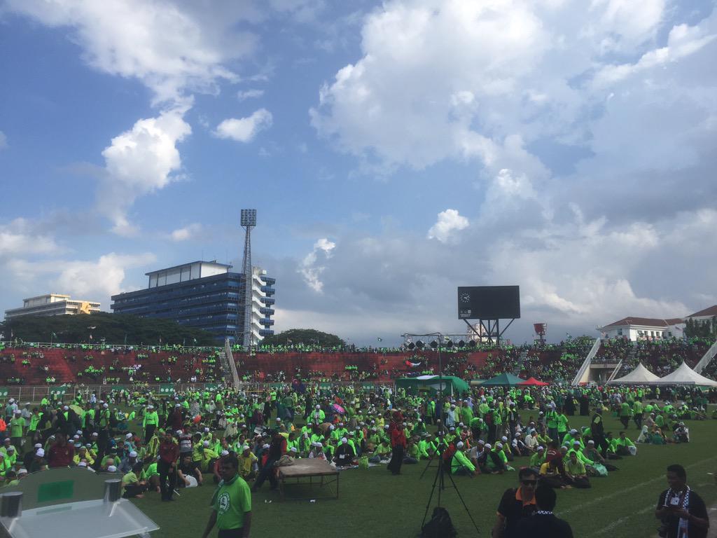 The stadium has been filled up by PAS supporters despite the slight drizzle #H60K @themmailonline