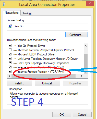 6. Select & double click into Internet Protocol Version 4 (TCP/IPv4)