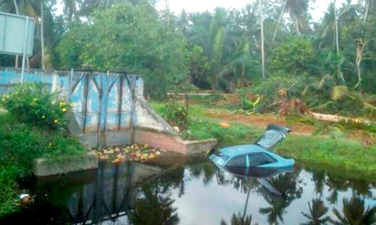 A pair of lovers in Malaysia drove their car into a ditch by mistake while trying to escape from a vice squad.