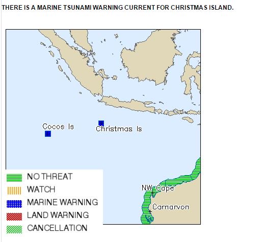 #Tsunami warning remains in place for #ChristmasIsland and #CocosIsland http://ab.co/24Bd7ce