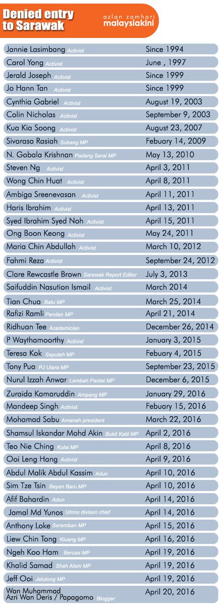 The Sarawak Immigration Department has thus far declined to reveal the full list of those barred from entering the state.~ Malaysiakini