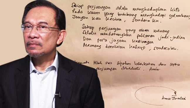 Before I end – I am now dejected. I don’t mean to burden you with the sufferings of loneliness in prison. Such a test, although hard for me, Azizah and my family to bear, is not as complicated as handling the party’s recent developments.