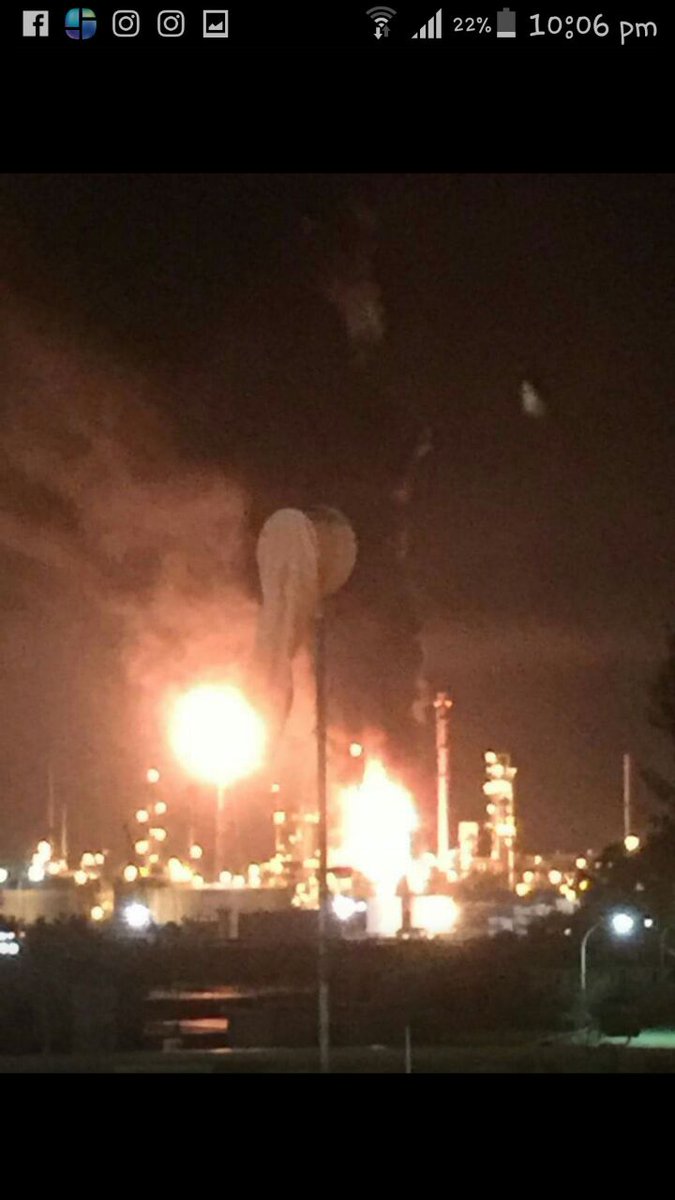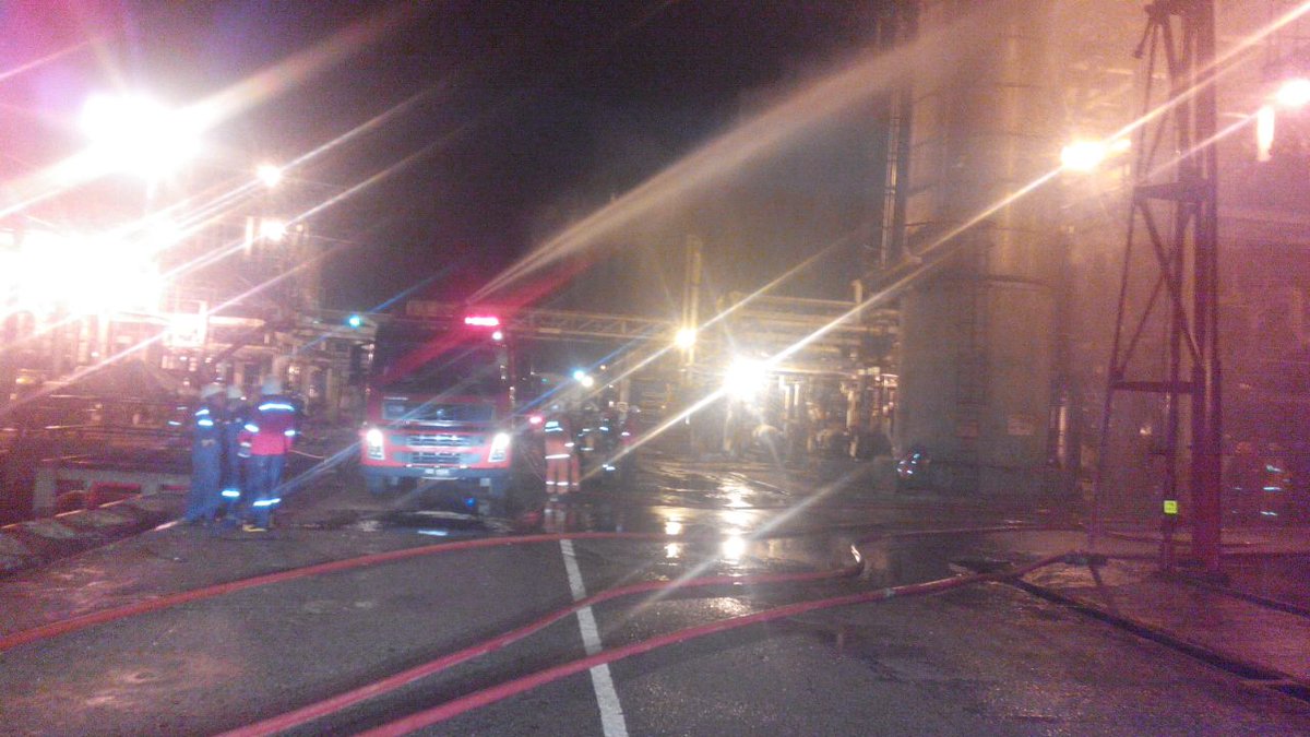 The fire, which began at 9.30pm, saw 10-metre-high flames shoot up, believed to be due to leaking on the refinery stacks.