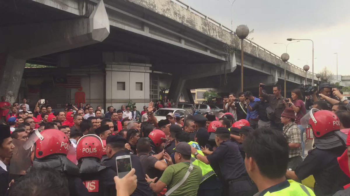 Red-shirts descend on DAP HQ, see red over police blockade https://www.malaysiakini.com/news/348280