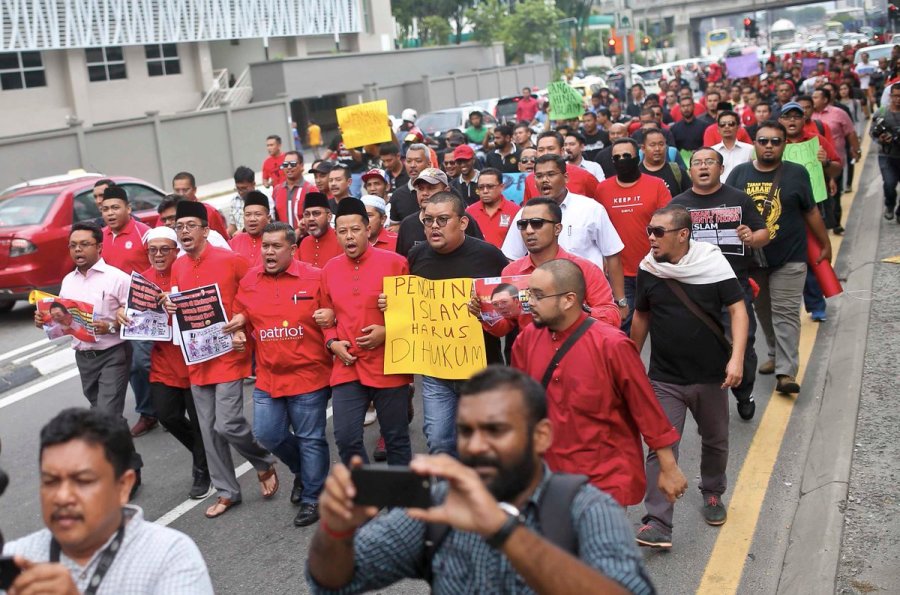 Ali Tinju, Red Shirts & Umno Youth marches to DAP HQ in protest of ‘insulting’ Aidifitri post