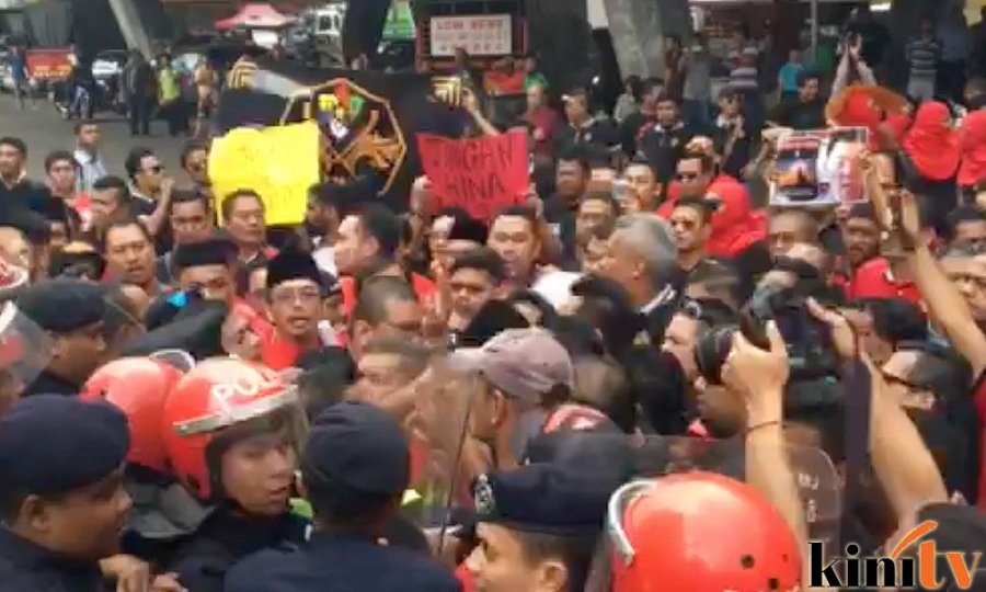 Ali Tinju, Red Shirts & Umno Youth marches to DAP HQ in protest of ‘insulting’ Aidifitri post