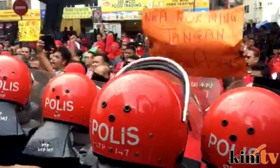 Ali Tinju, Red Shirts & Umno Youth marches to DAP HQ in protest of ‘insulting’ Aidifitri post