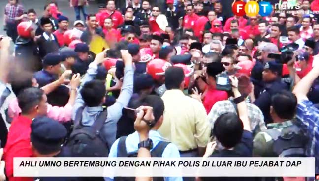 Ali Tinju, Red Shirts & Umno Youth marches to DAP HQ in protest of ‘insulting’ Aidifitri post