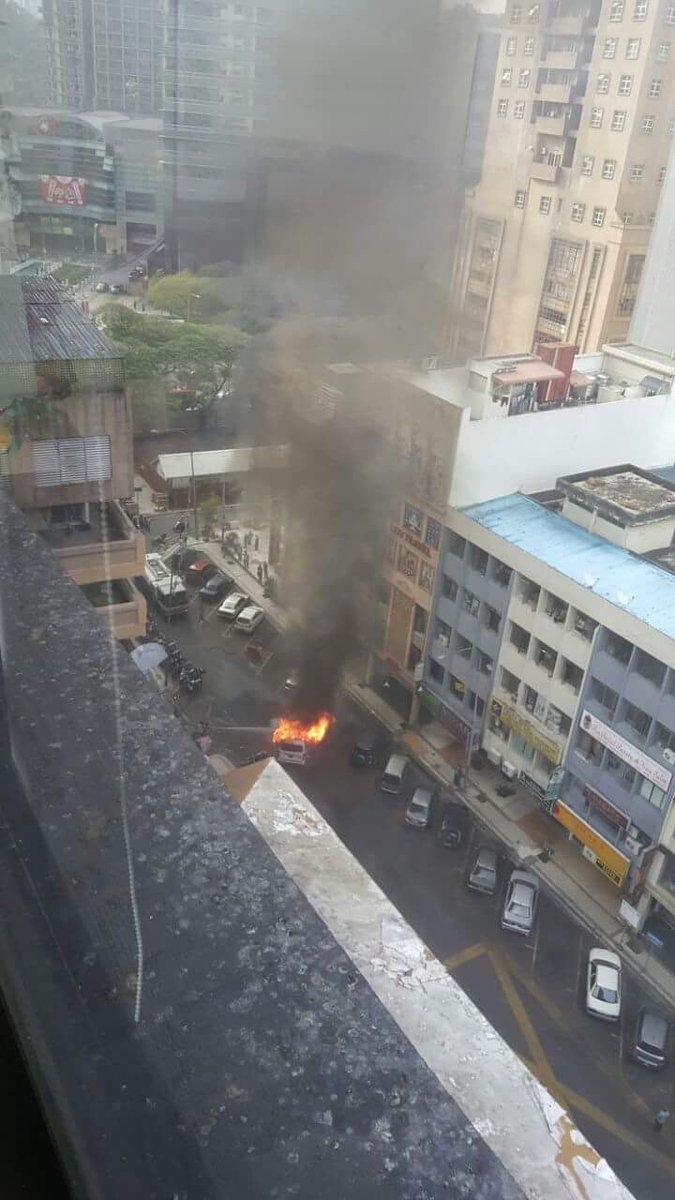 No, this van caught fire. No explosives involved. Not a police van. Not an act of terrorism.