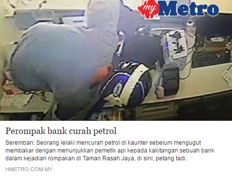 With petrol and lighter, he robbed a bank! In Seremban.