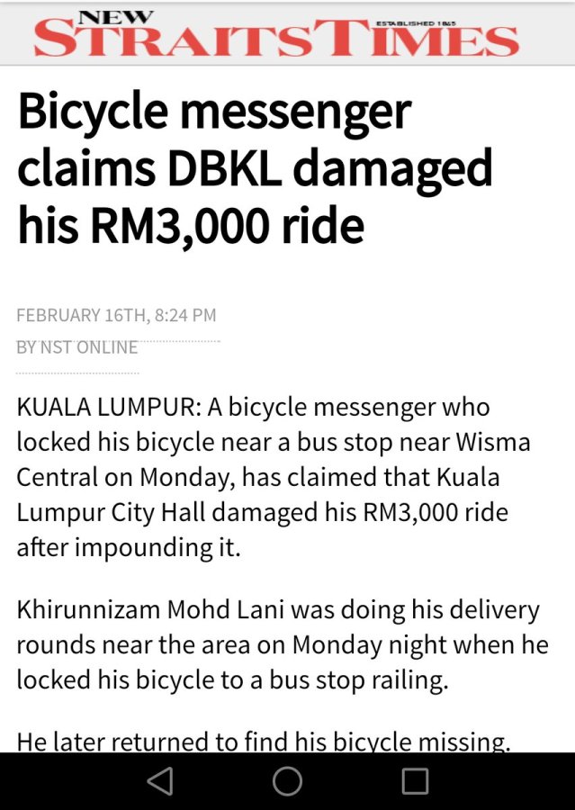 UMNO’s DBKL bullies at work: They damaged the guy’s bicycle. Equally high handed at Protest against bicycle impounds. Do they answer to no one?