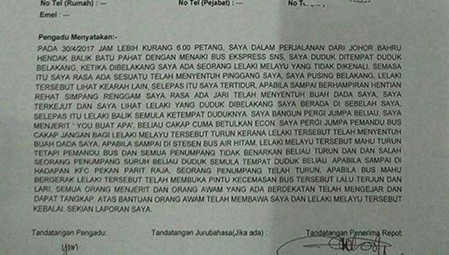 Molested on the JB – Batu Pahat bus but she got him arrested! #BraveYoungLady