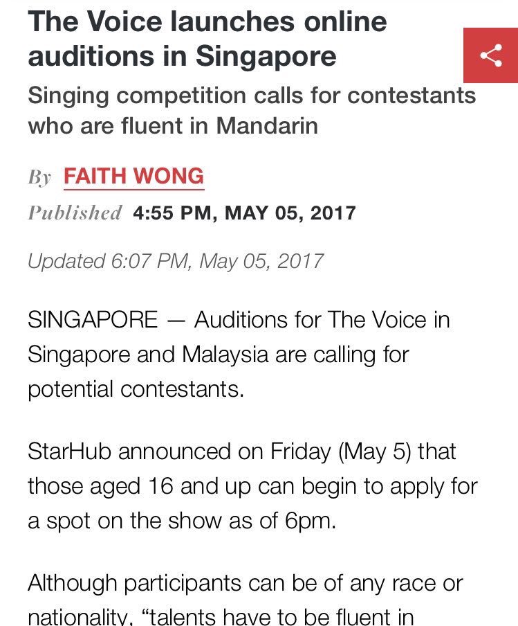 Singapore is a multi-cultural country they said.Even The Voice here requires you to sing in mandarin. Soooooo multi cultural