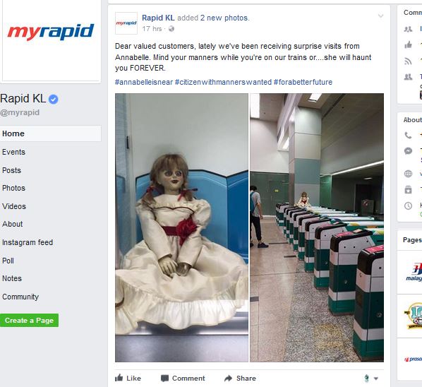 RapidKL’s use of Annabelle to combat vandalism leads to ‘pocong’story #YouAskedForIt