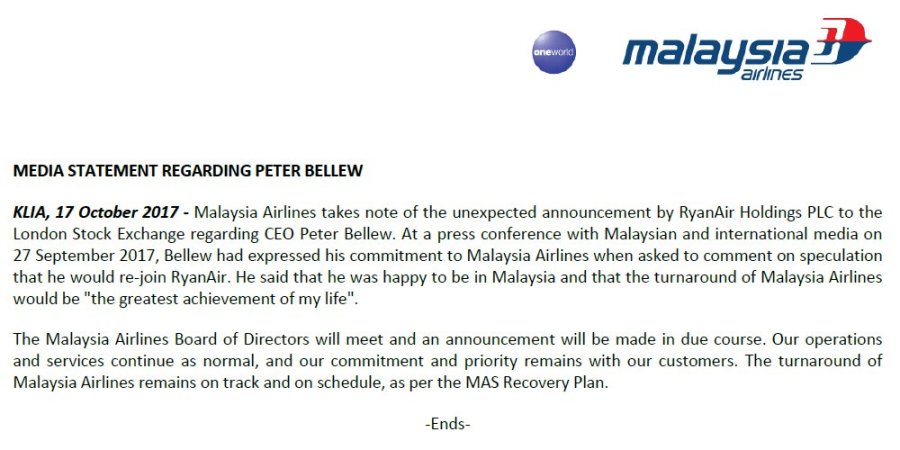 Peter Bellew leaves MAS after less than a year as CEO. 2nd Foreigner-CEO to resign.
