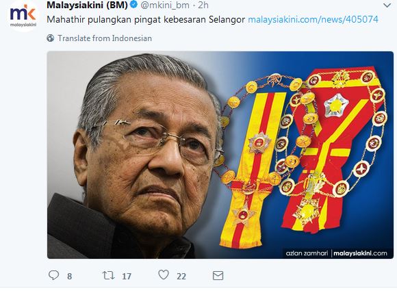 Dr Mahathir returns Selangor royal awards, and so does Siti Hasmah…