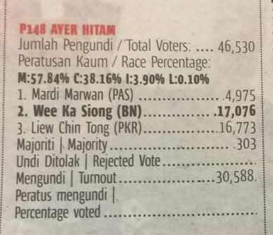 ← GE 14: DAP’s Liew Chin Tong failed to wrest the Ayer Hitam Parliamentary seat from Wee Ka Siong, MCA deputy president…