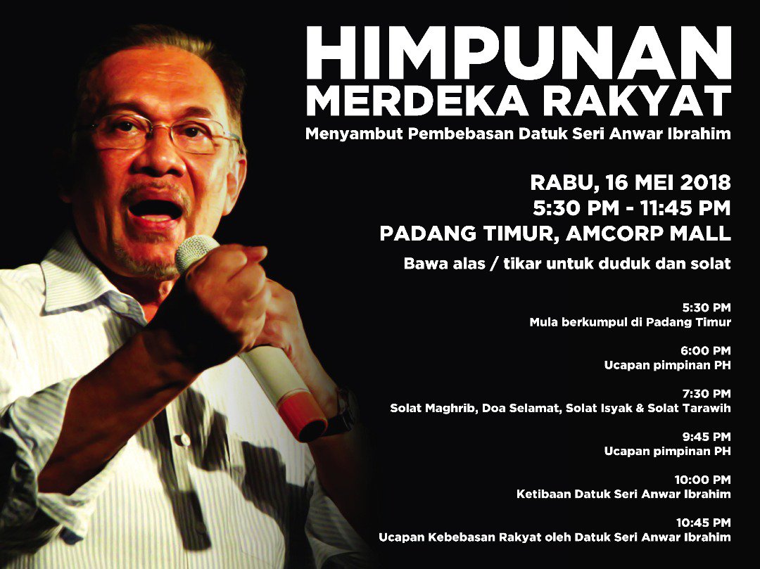 16 May 2018: Anwar Ibrahim is FREE. He no longer lives in Sungai Buloh Prison, Jalan Harapan.