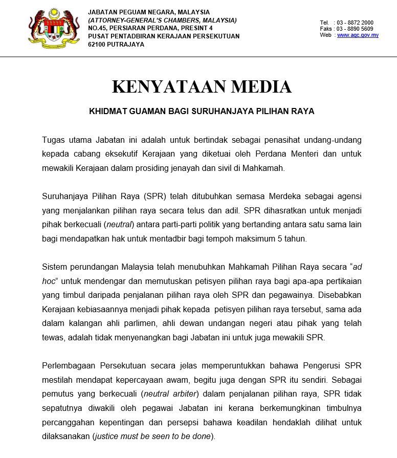 The AG’s Chambers will no longer represent the EC in court…
