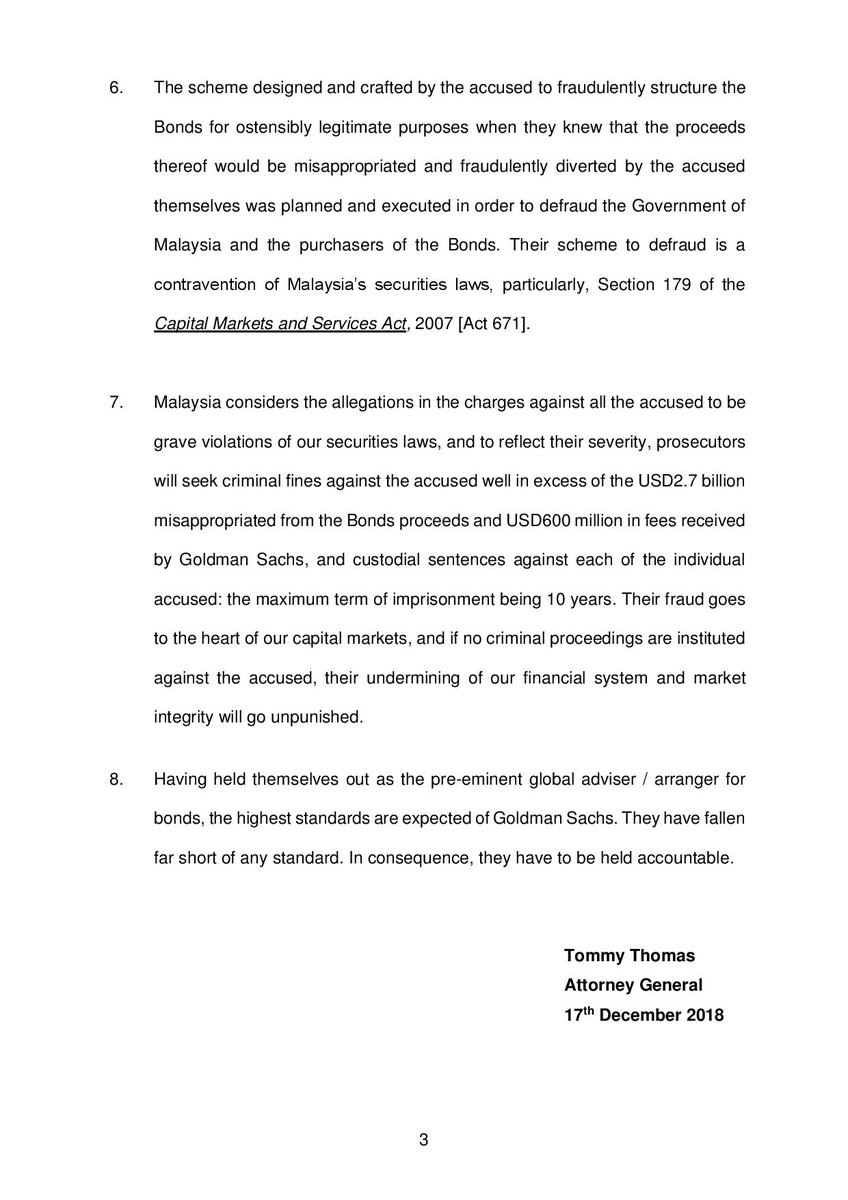 Malaysia files charges against Goldman Sachs, and former Goldman executives, Roger Ng Chong Hwa and Tim Leissner…