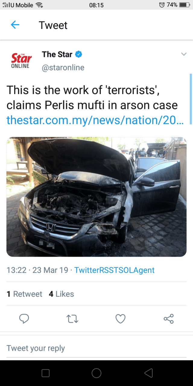 Perlis mufti wants swift arrest of ‘cowards’ who torched his car https://t.co/KWPwoAwwnn