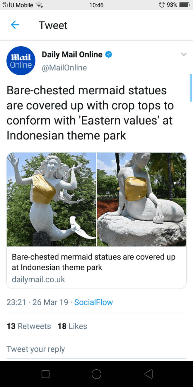 Bare-chested mermaid statues are covered up with crop tops to conform with ‘Eastern values’ at Indonesian theme park https://t.co/3mX9kpc5j2