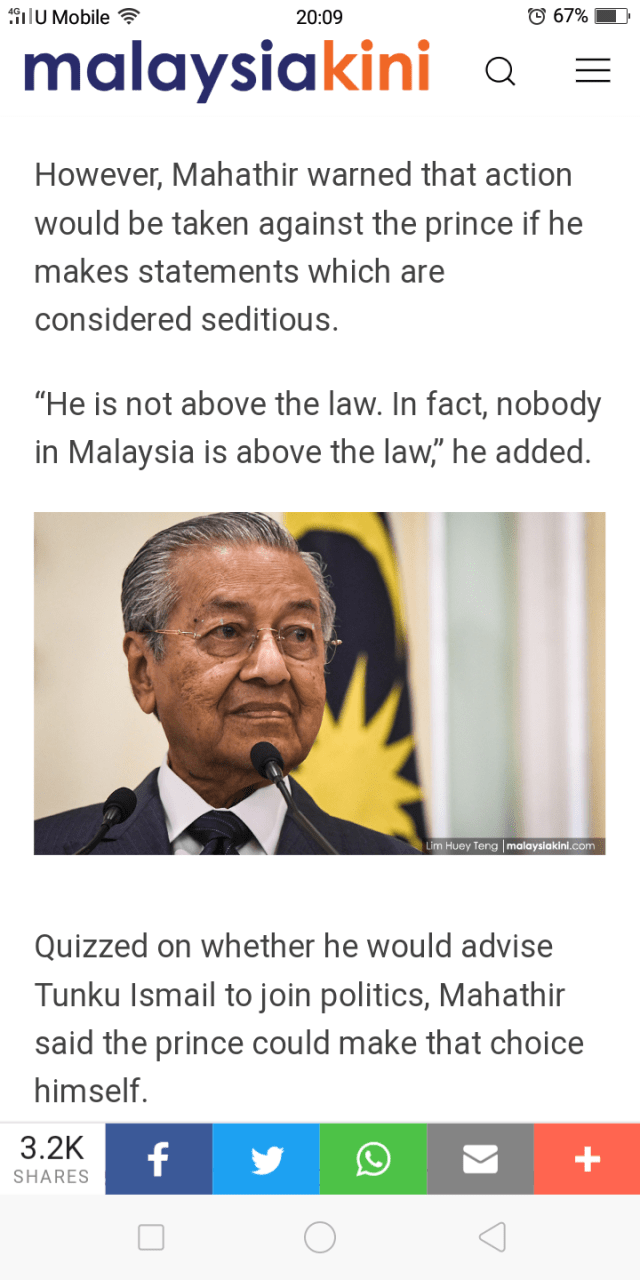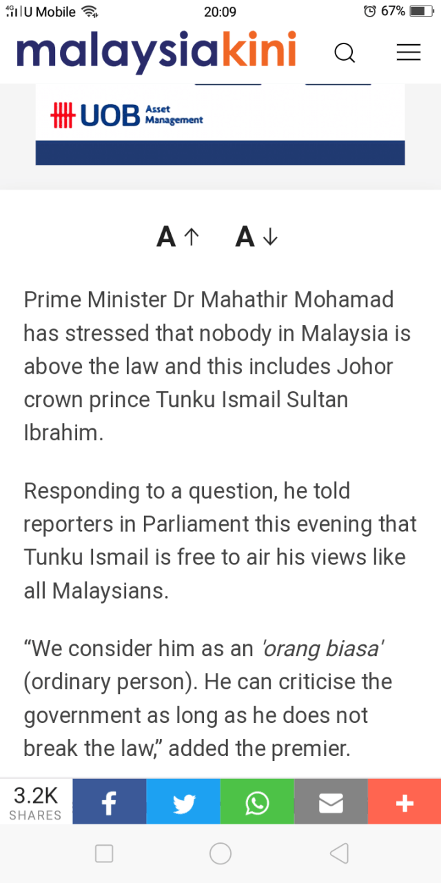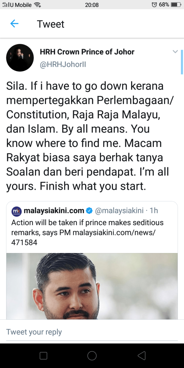 (The Star) β Johor Crown Prince Tunku Ismail Ibni Sultan Ibrahim is a regular citizen like any other Malaysian and he is not above the law, said Prime Minister Tun Dr… https://t.co/MWCdL6tCgV