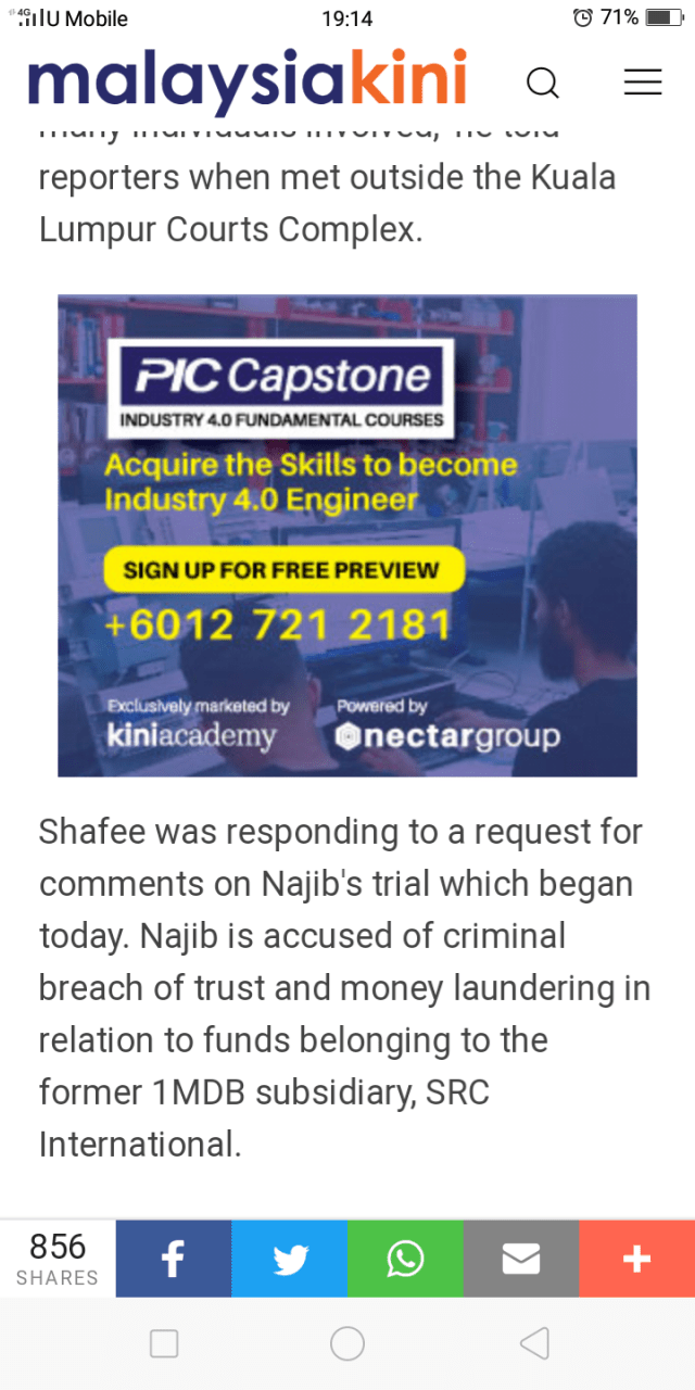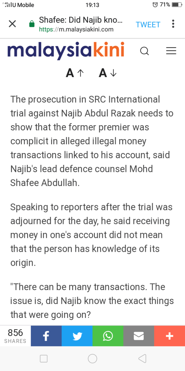 Lawyer Muhammad Shafee Abdullah has claimed that former prime minister Najib Abdul Razak is a victim of fugitive businessperson Low Taek Jho’s conspiracy.Najib is facing a trial into three counts of criminal breach of trust (CBT) and one count of abuse of his position as then-prime minister in relation to funds amounting to RM42 million linked to SRC International, a former 1Malaysia Development Berhad (1MDB) subsidiary.The 65-year-old politician, who was also finance minister and adviser emeritus of SRC International, is also facing three money laundering charges over the RM42 million.