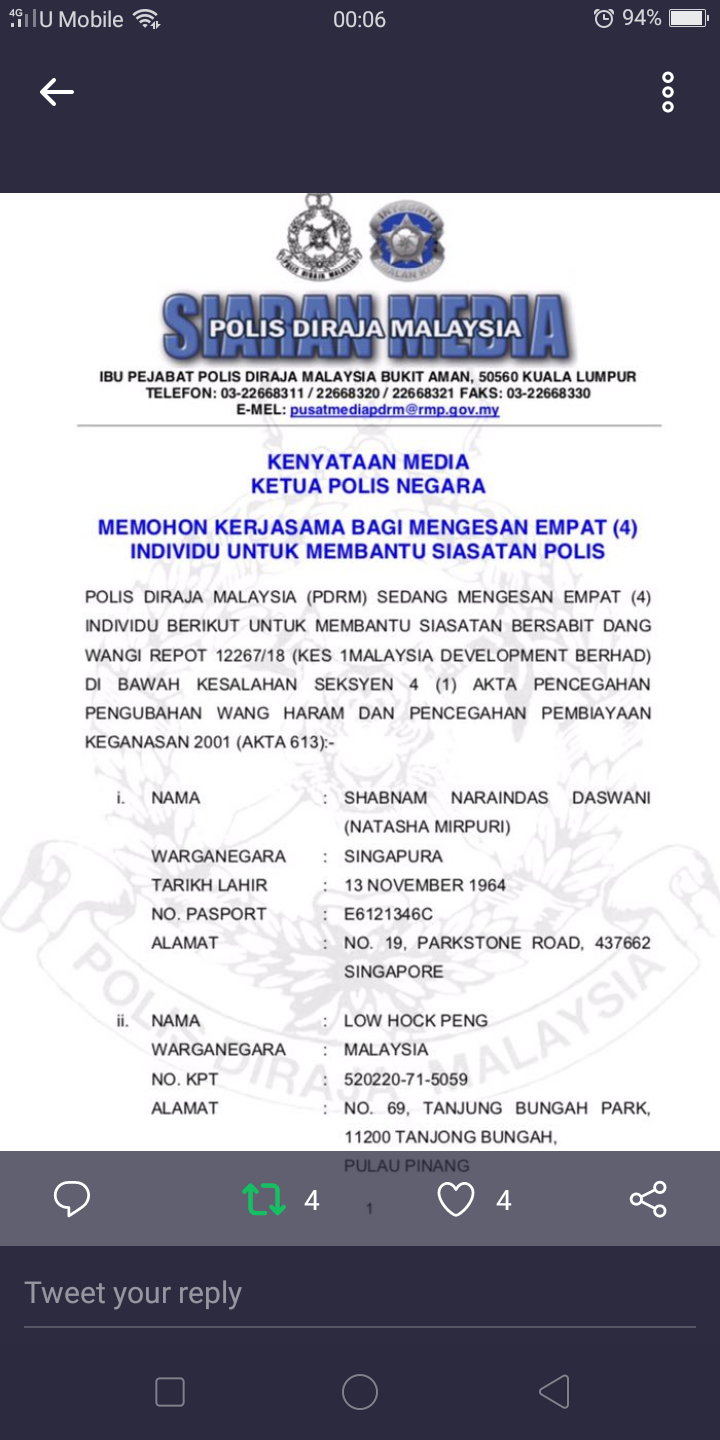 Natasha Mirpuri is actually Singaporean National Shabnam Naraindas Daswani. She seems to have scrubbed herself clean of any social media accounts. Seems to have profited handsomely from enabling acquisitions of jewelry on behalf of Jho Low for Rosmah.