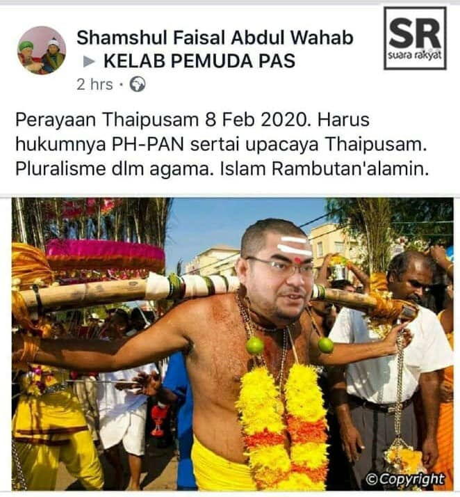 ← Facebook user, Shamsul Faisal Abdul Wahad, creates fake photos of Mujahid Yusof Rawa carrying a kavadi…