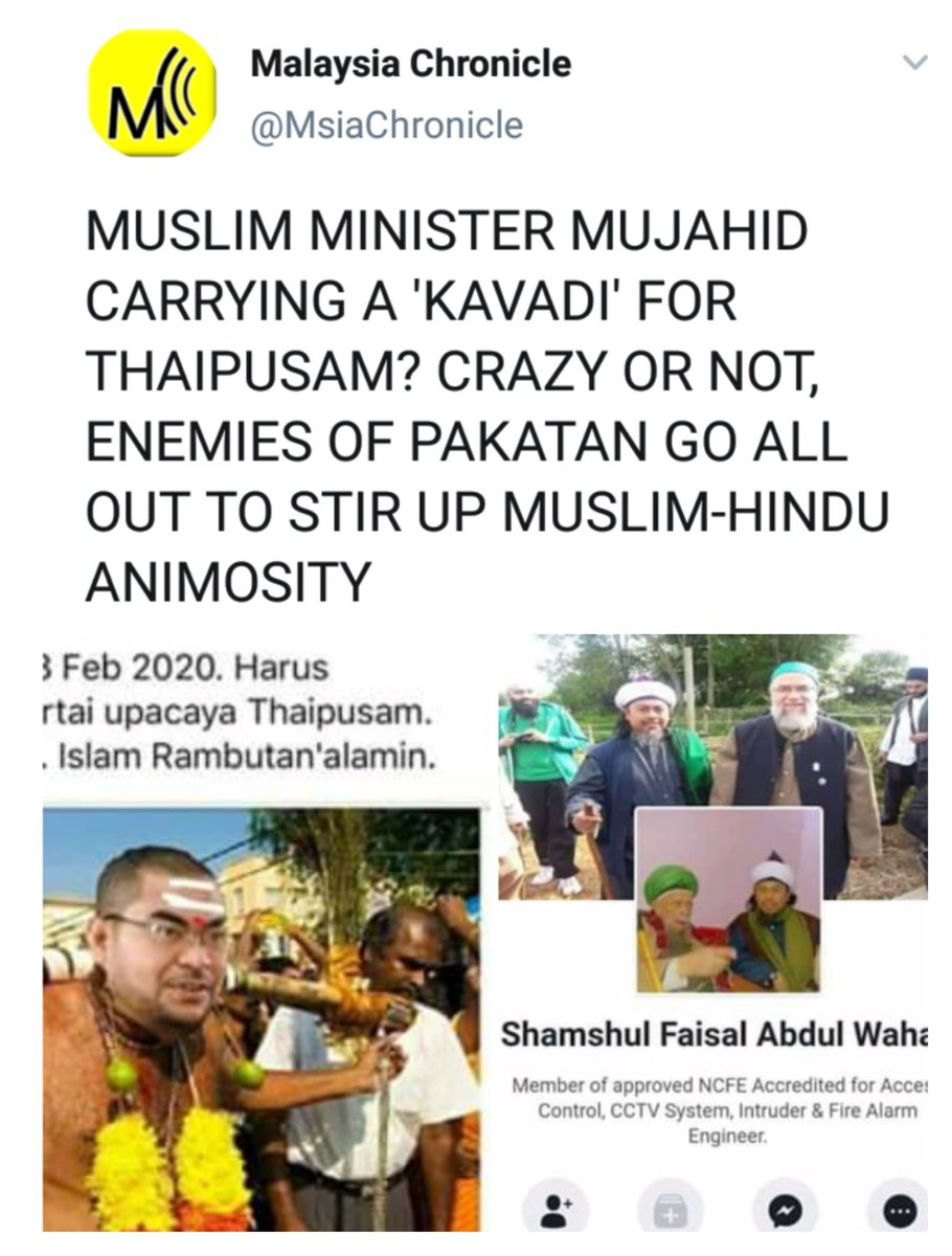 ← Facebook user, Shamsul Faisal Abdul Wahad, creates fake photos of Mujahid Yusof Rawa carrying a kavadi…