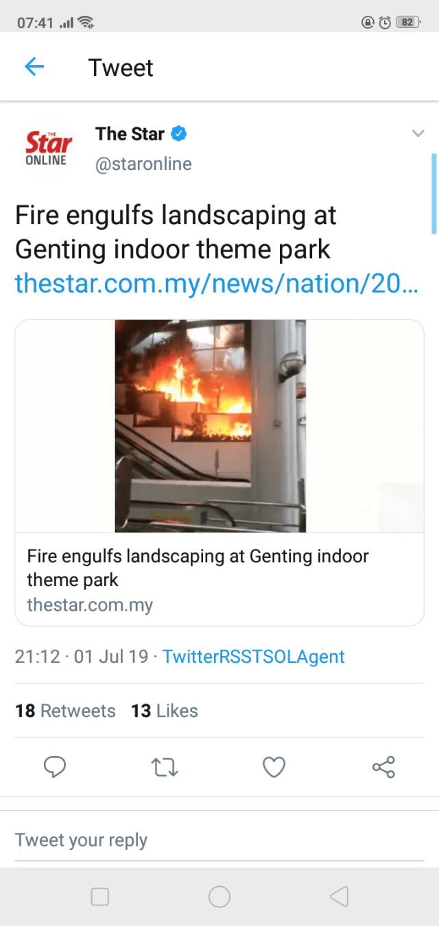 Fire breaks out at Genting's indoor theme park — report – https://t.co/UUengEvTdK https://t.co/Vfas3FOjMI — The Edge Malaysia (@theedgemalaysia) July 1, 2019