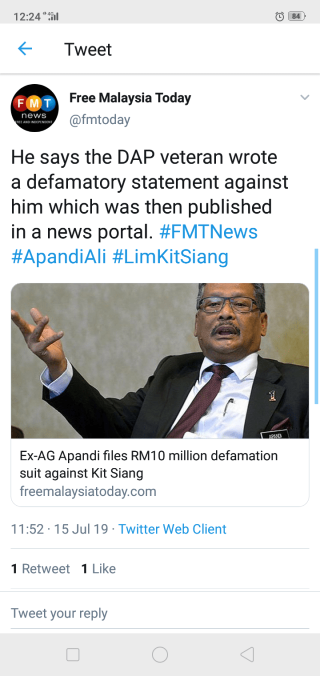 The judge added that Lim succeeded in also raising the defence of qualified privilege against Apandi’s civil suit.