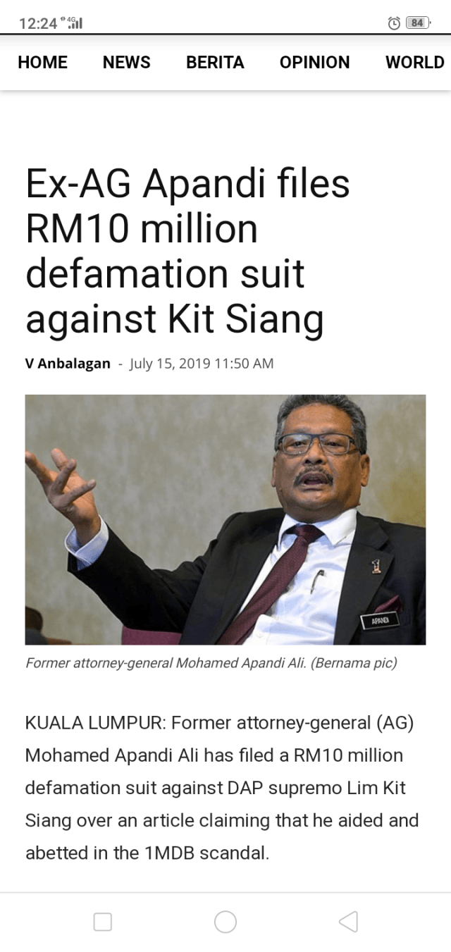 I will contest Apandi’s suit, but it is a matter of relief that Malaysians now will have the opportunity to get answers why Apandi had been totally inactive as Malaysian Attorney-General after the US Department of Justice’s (DoJ) filed its largest kleptocratic forfeiture suit (US$1.7 billion out of US$4.5 billion 1MDB-linked assets) over the 1MDB scandal.
