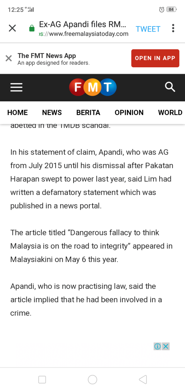 While reading out from the 100-page judgment today, Azimah noted that Lim’s article was not imputing that Apandi was guilty of abuse of power.