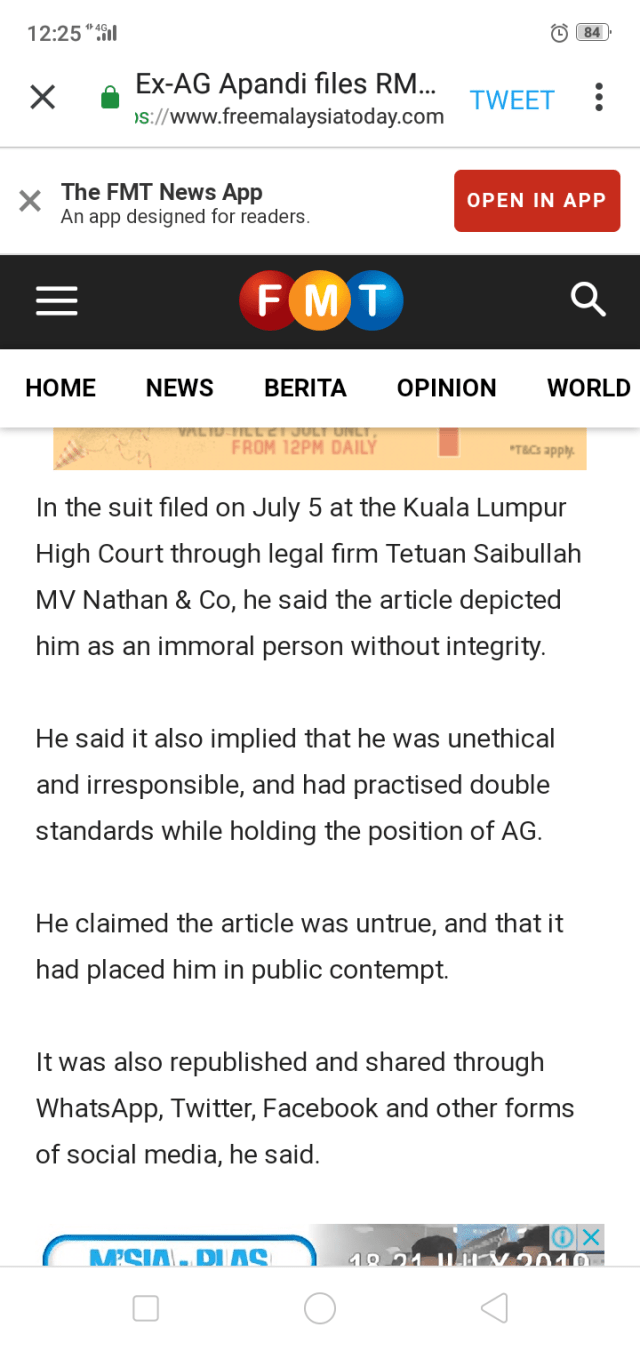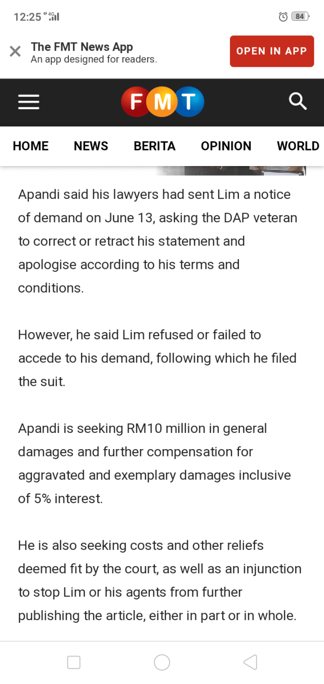 When I read of Apandi’s suit in media yesterday, I have not received Apandi’s statement of claim.