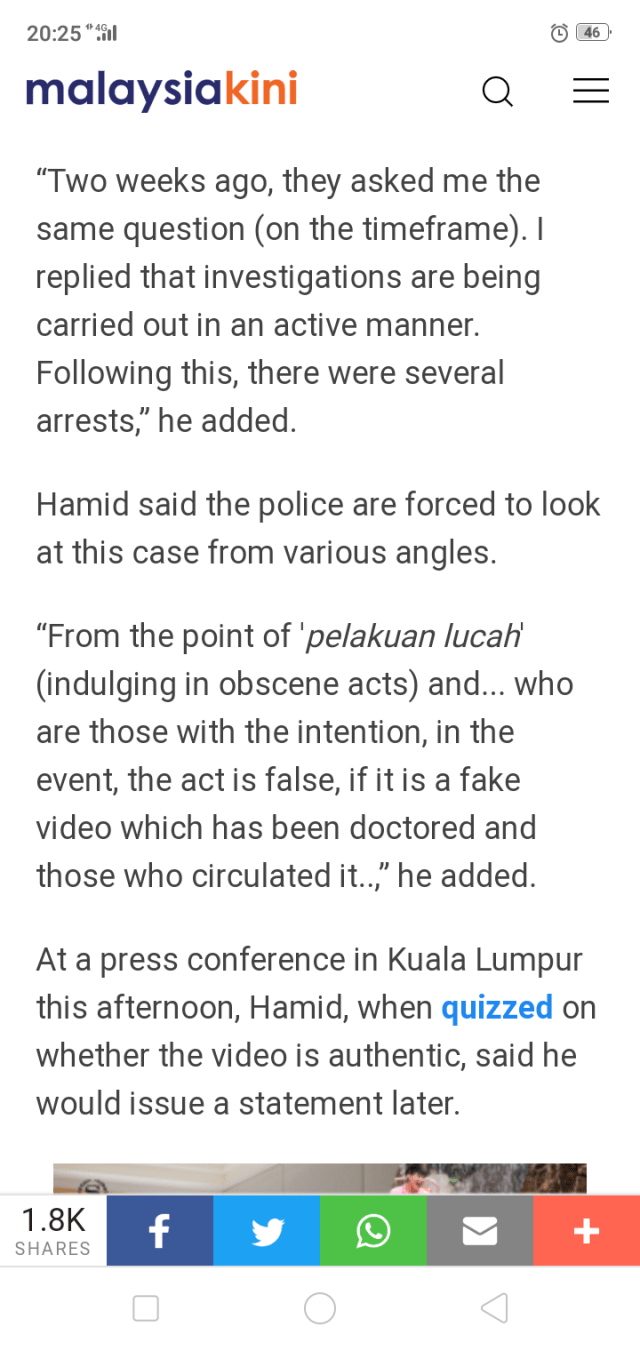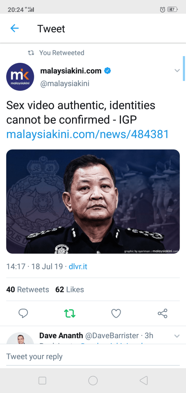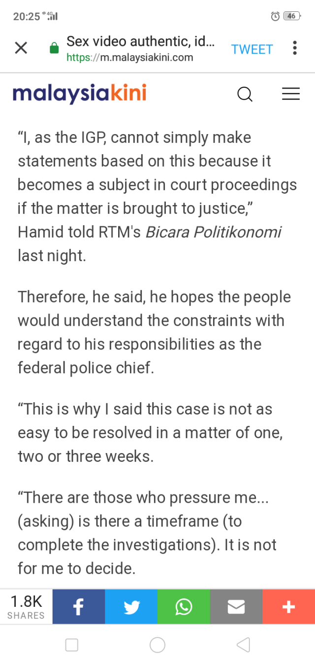 JUST IN : IGP stresses that the police will not take sides in the sex video probe . “There is no interference from anyone “ ~Abdul Hamid Bador