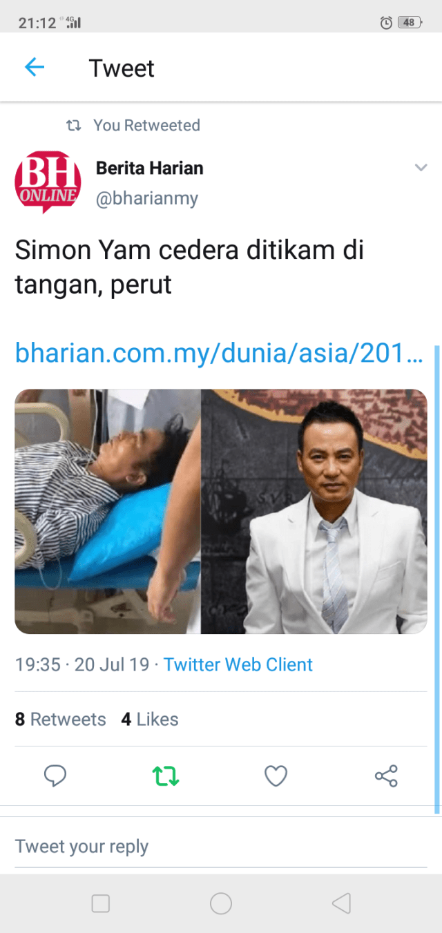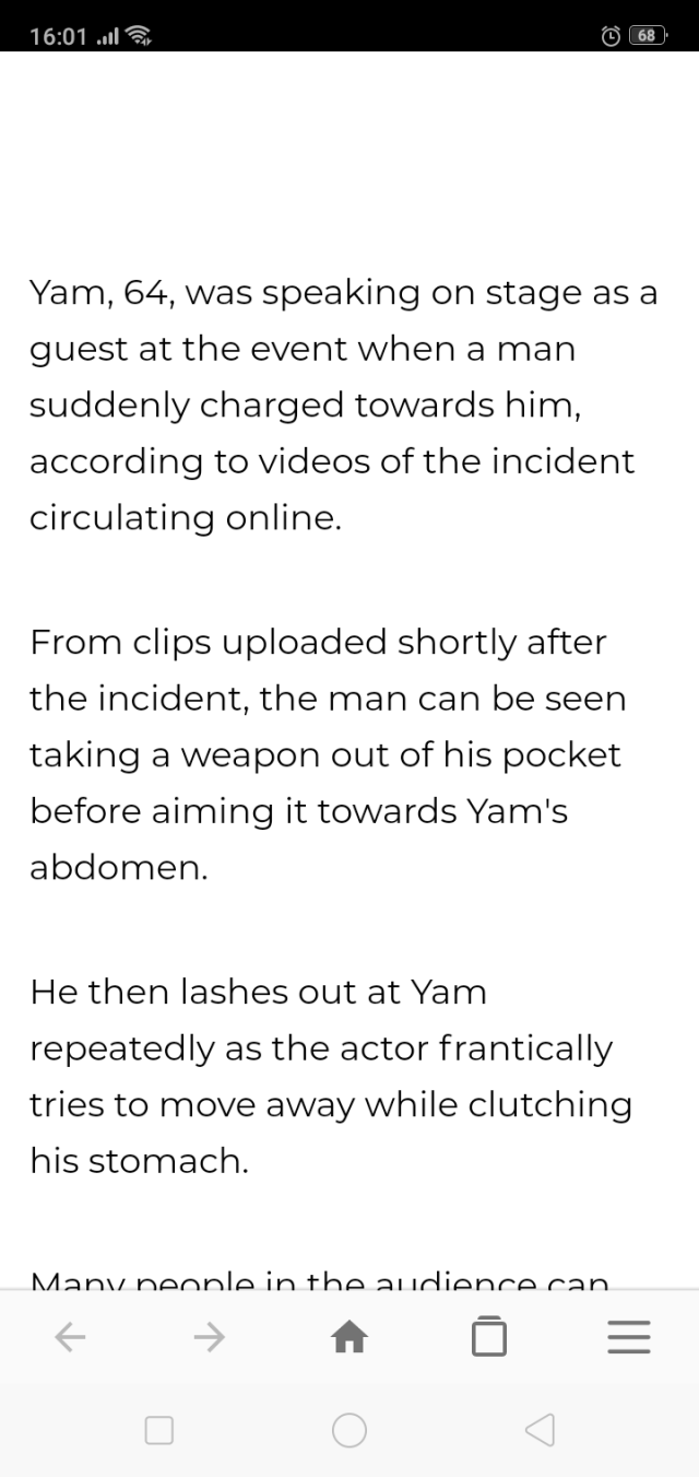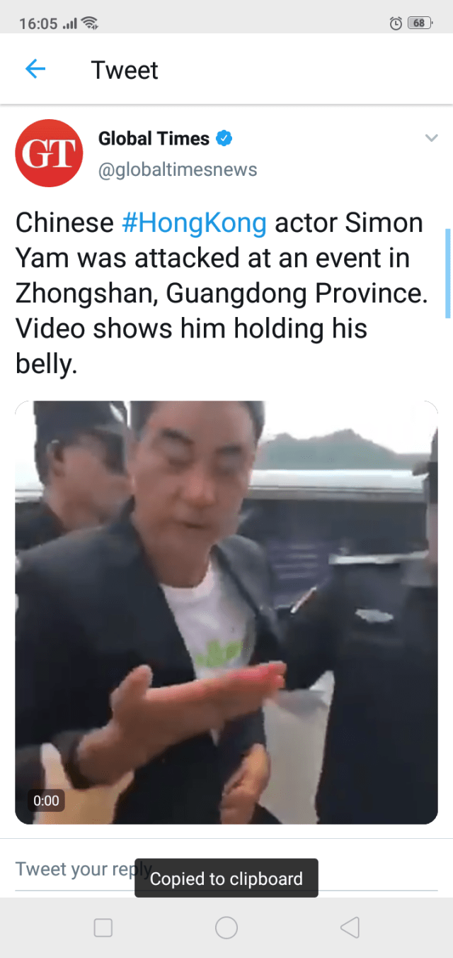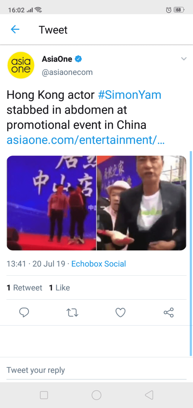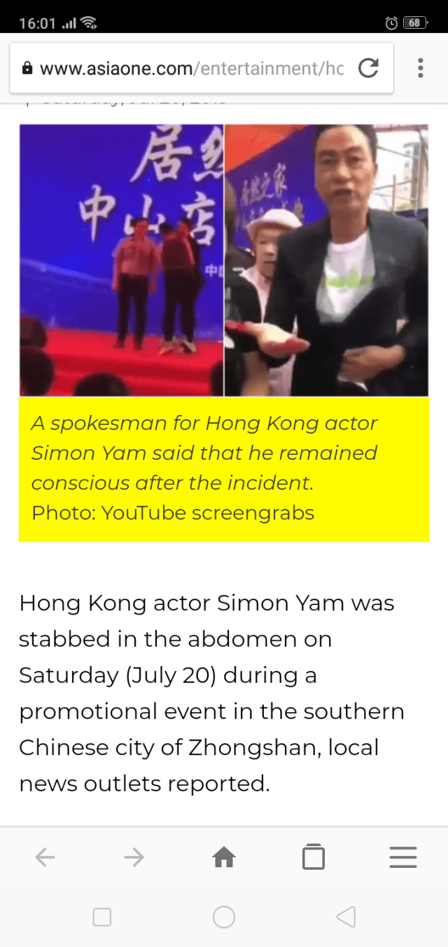 Chinese #HongKong actor Simon Yam was attacked at an event in Zhongshan, Guangdong Province. Video shows him holding his belly. pic.twitter.com/E0otOe1jjI