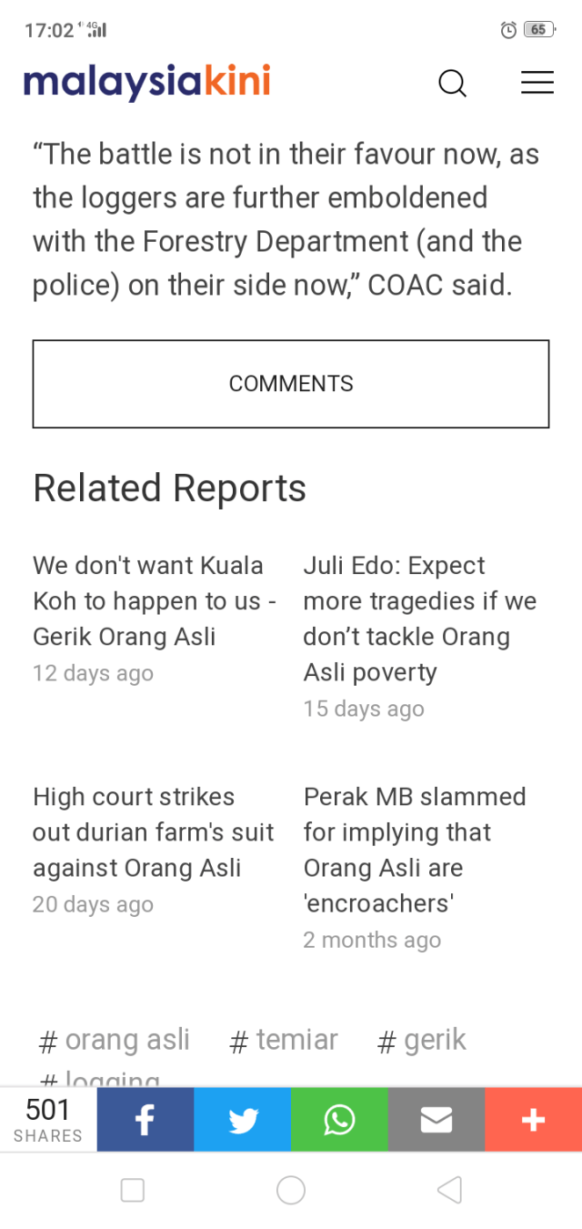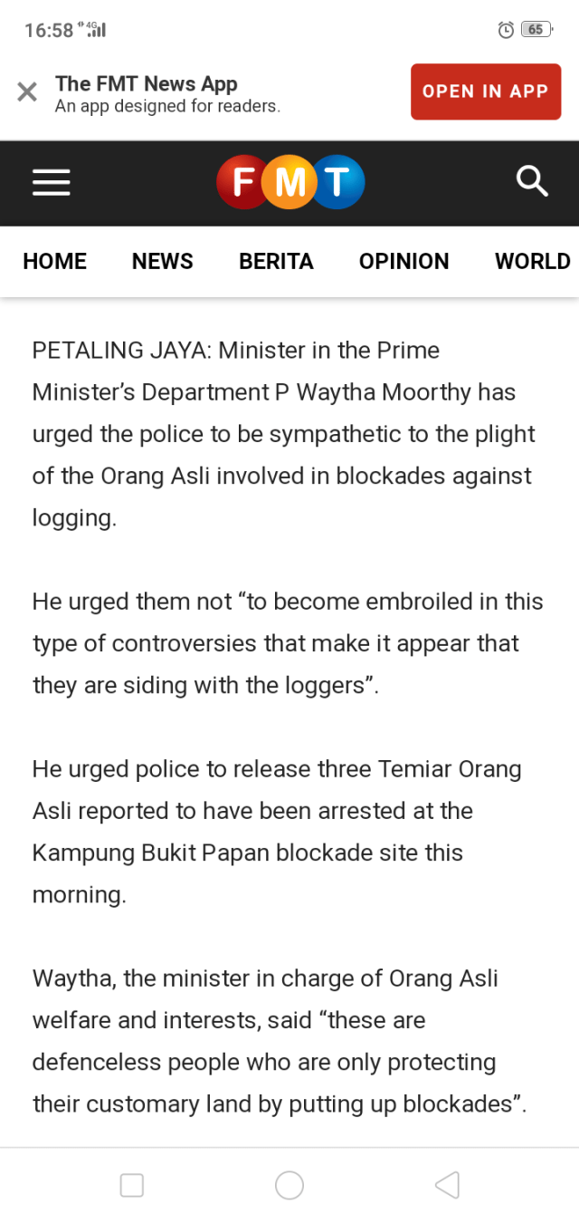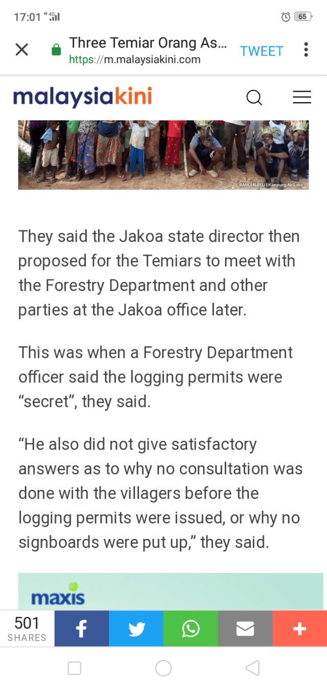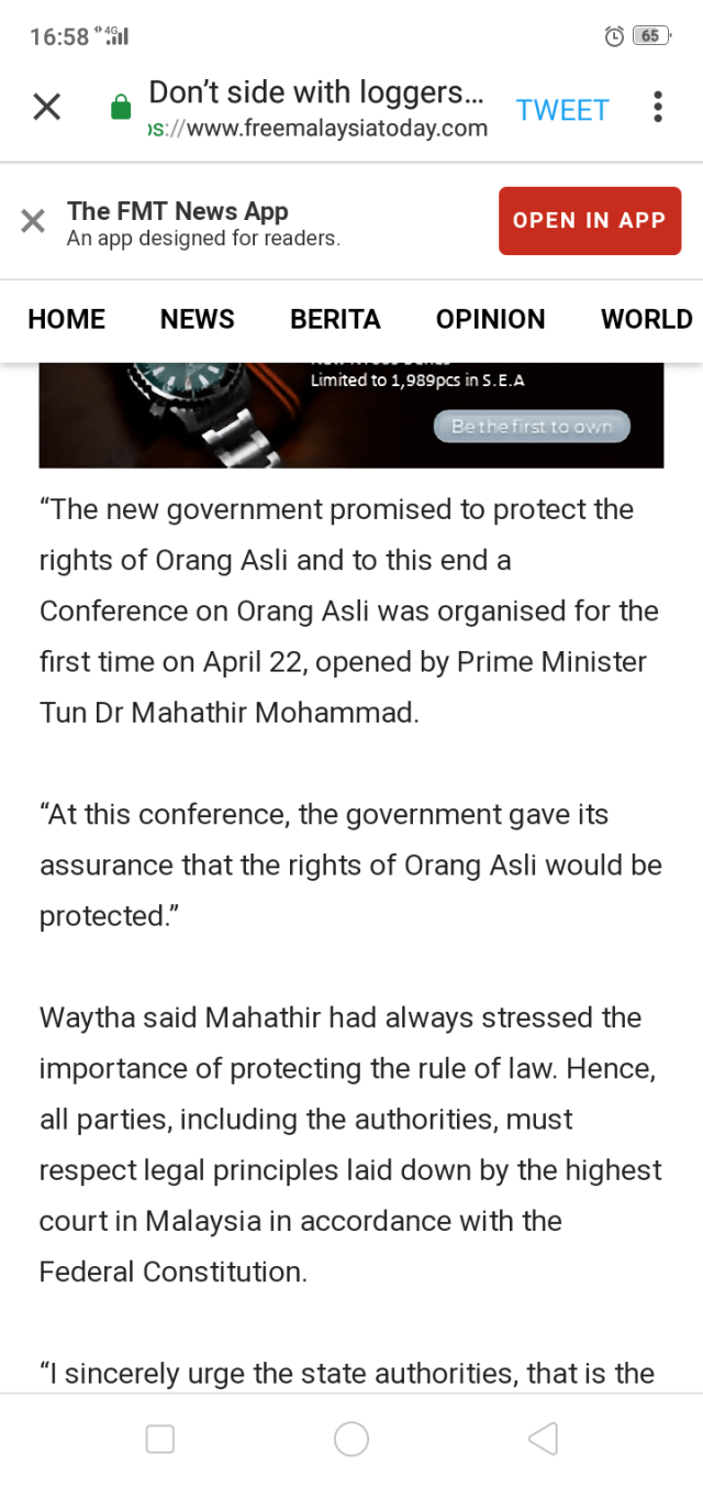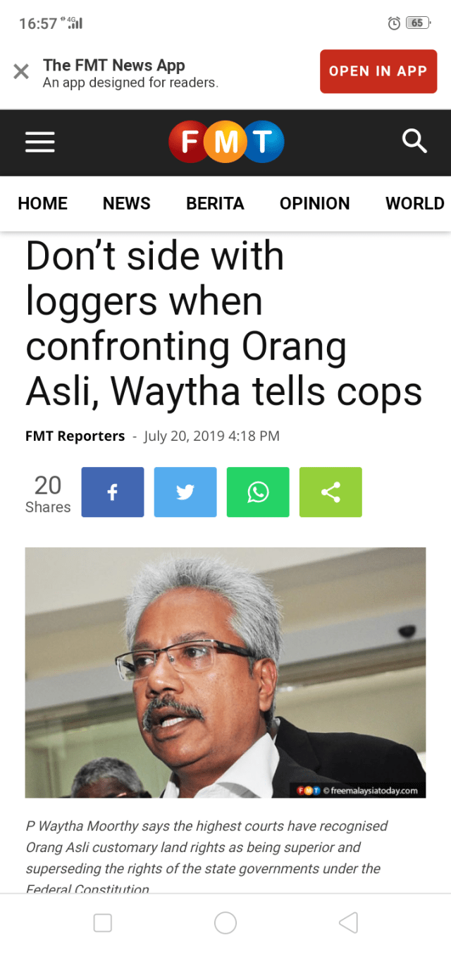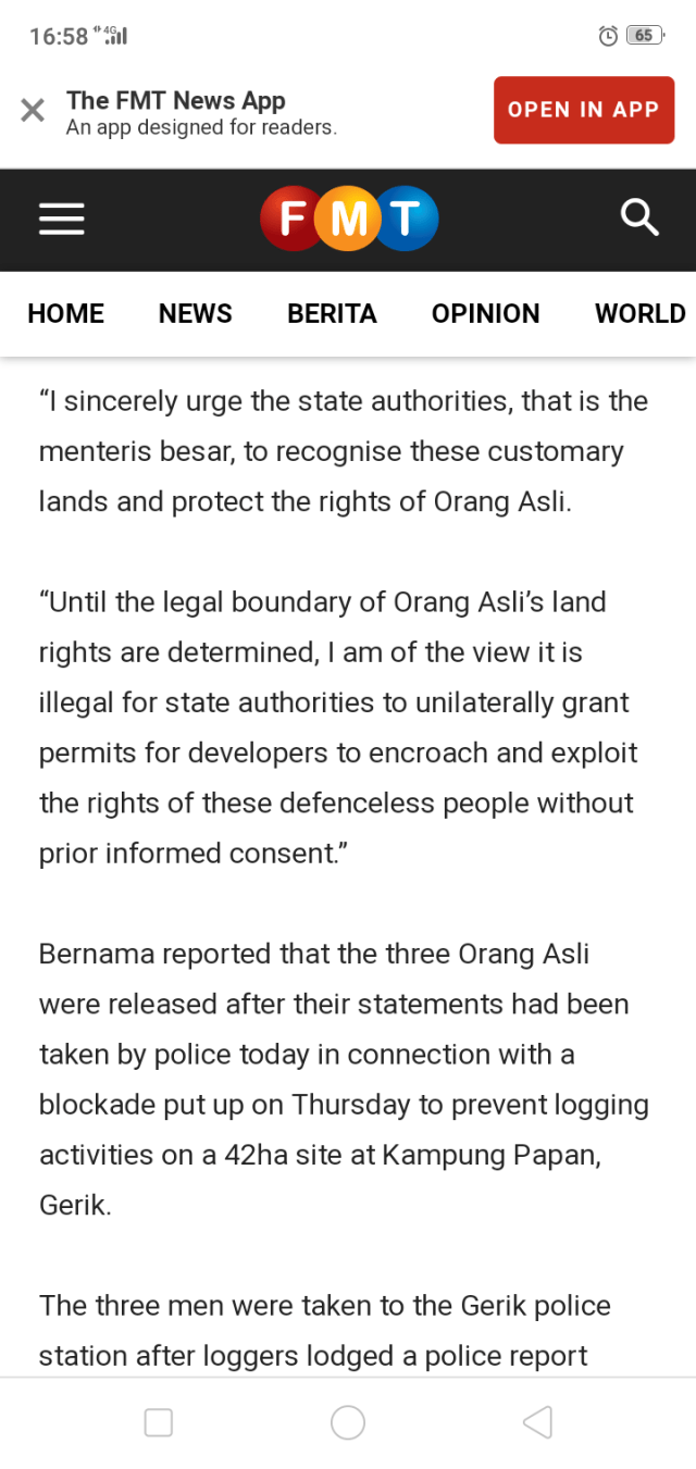 “Until the legal boundary of Orang Asli’s land rights is determined, I am of the view it is illegal for state authorities to unilaterally grant permits for logging concerns to encroach and exploit the rights of these defenceless people without prior informed consent,” said Waythamoorthy.