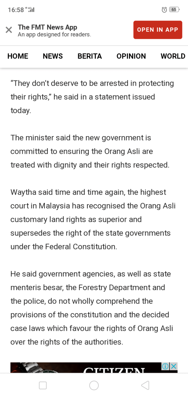 He said the Federal Court has recognised that Orang Asli customary land rights supersede the rights of the state governments.