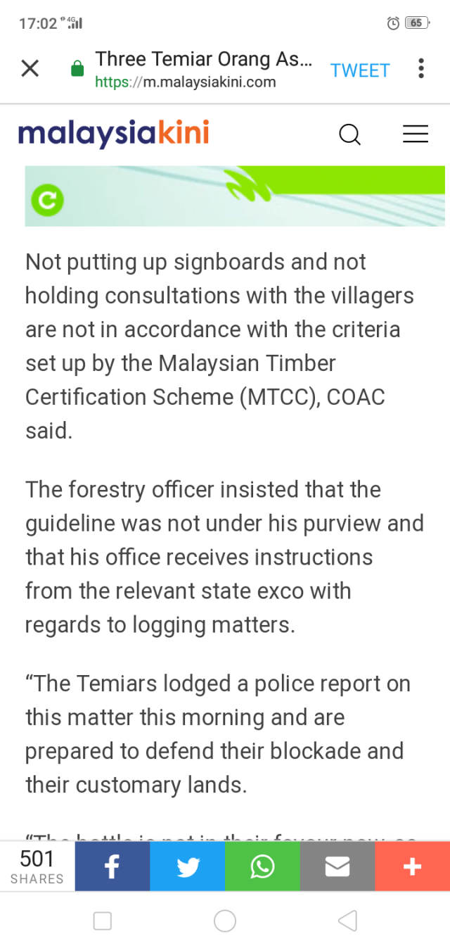 The COAC had earlier said that not putting up signboards and not holding consultations with the villagers were not in accordance with criteria set by the Malaysian Timber Certification Scheme (MTCC).