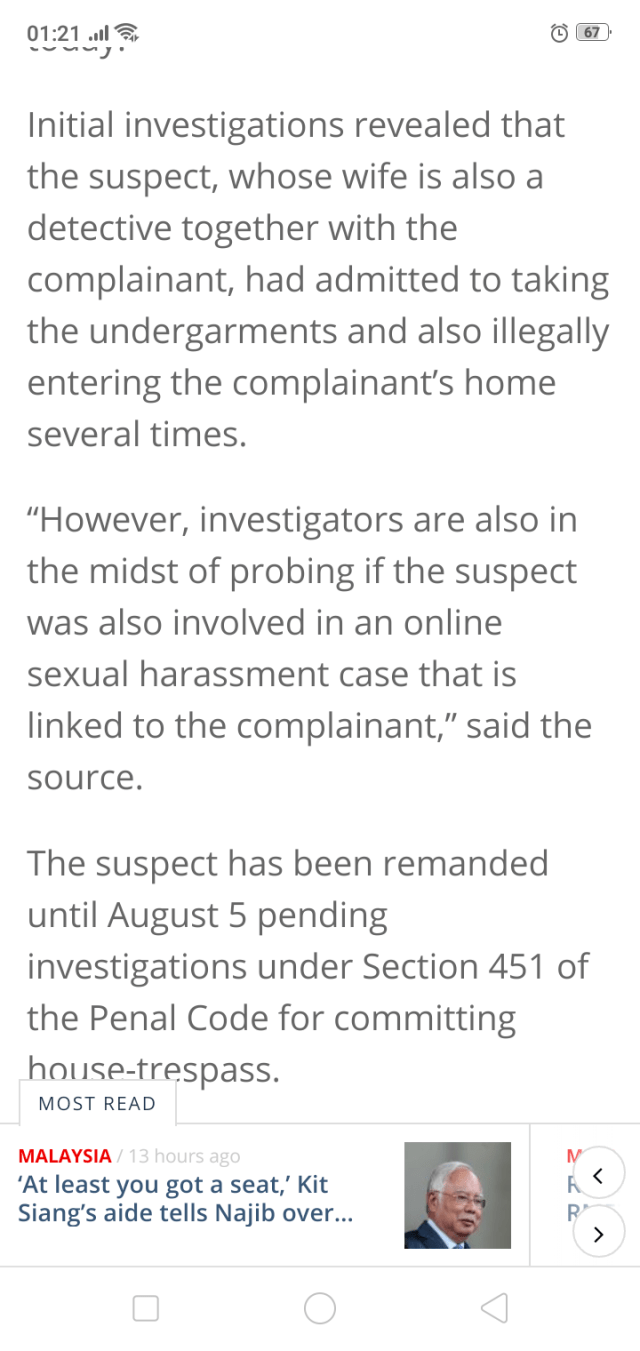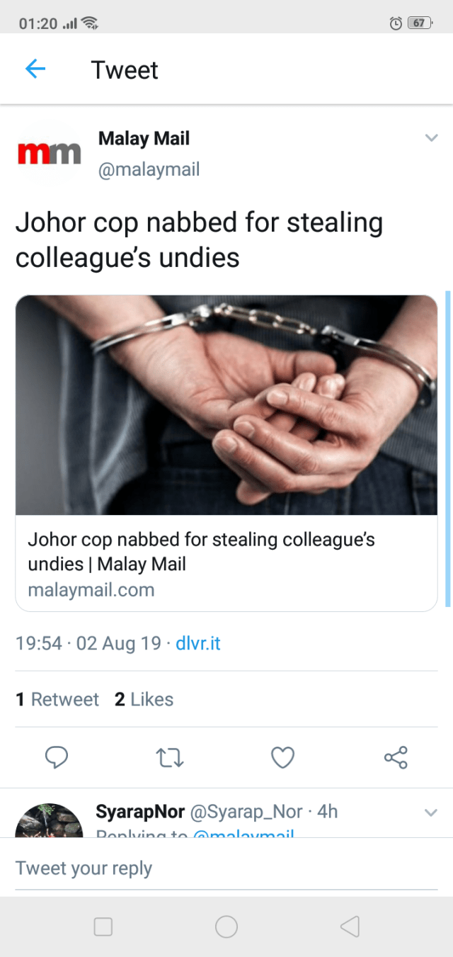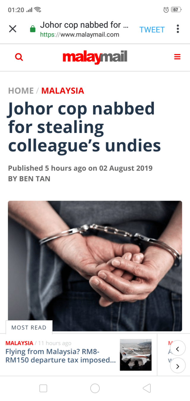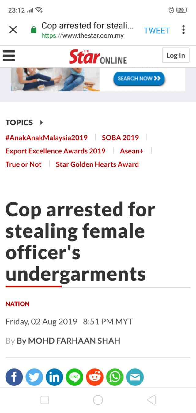 .https://www.thestar.com.my/news/nation/2019/08/02/cop-arrested-for-stealing-female-officer039s-undergarments#GKAEfo2myU2GcXFO.99..