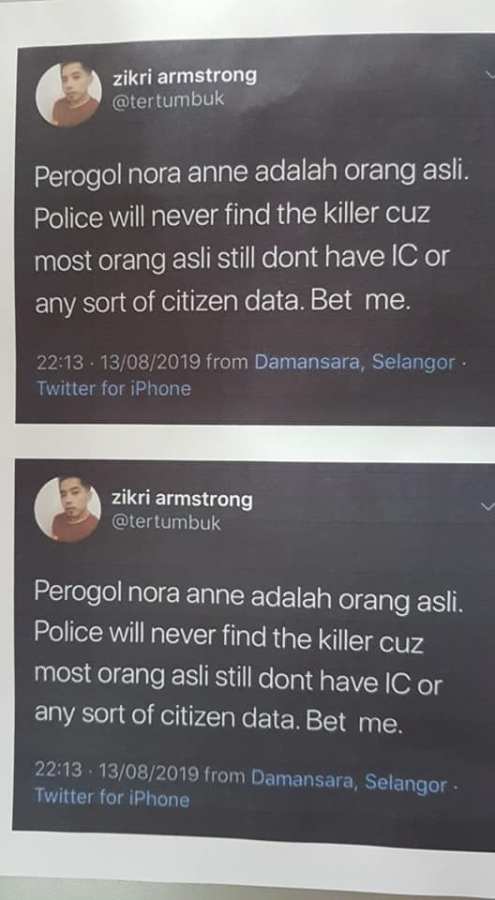Arrested: Zikri Armstrong, who slandered the Orang Asli regarding Nora Anne Quoirin…