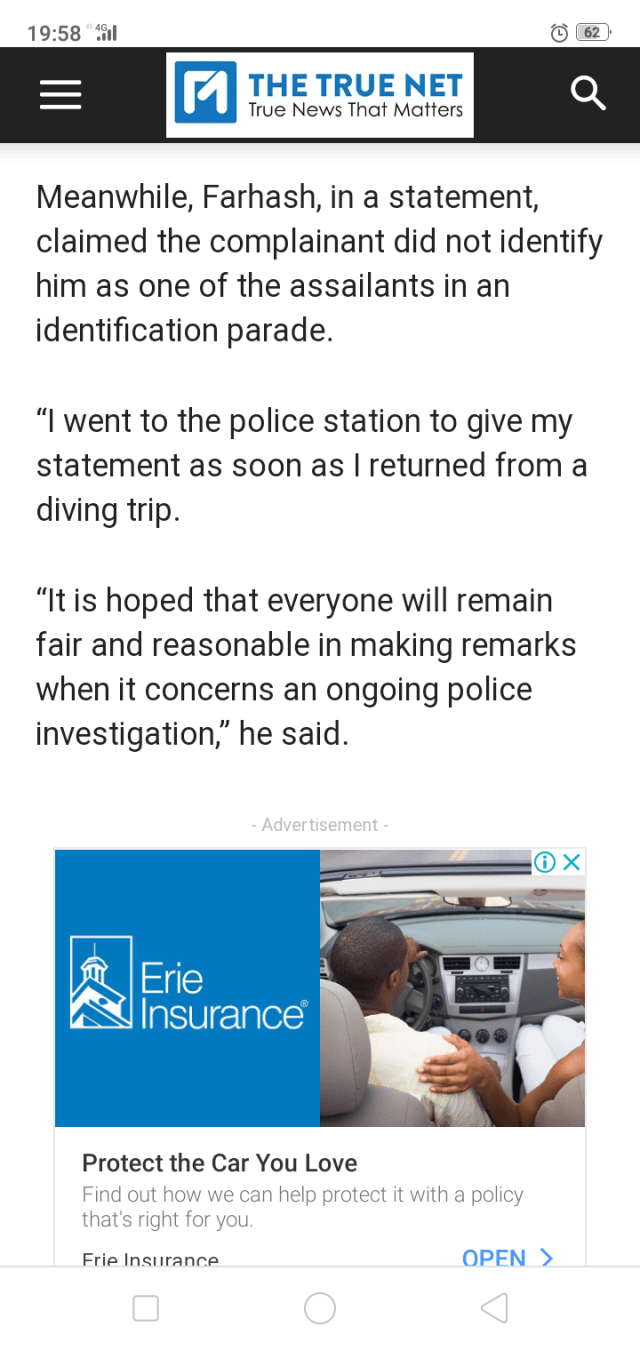 Earlier, Farhash had dismissed rumours that he had been involved in a fight.