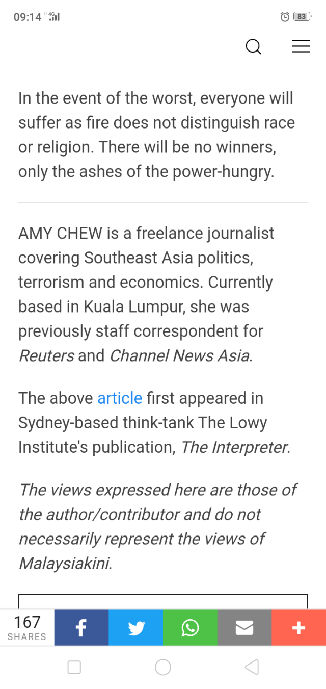 Amy Chew in Malaysiakini: Malaysia’s dangerous racial, religious rhetoric.