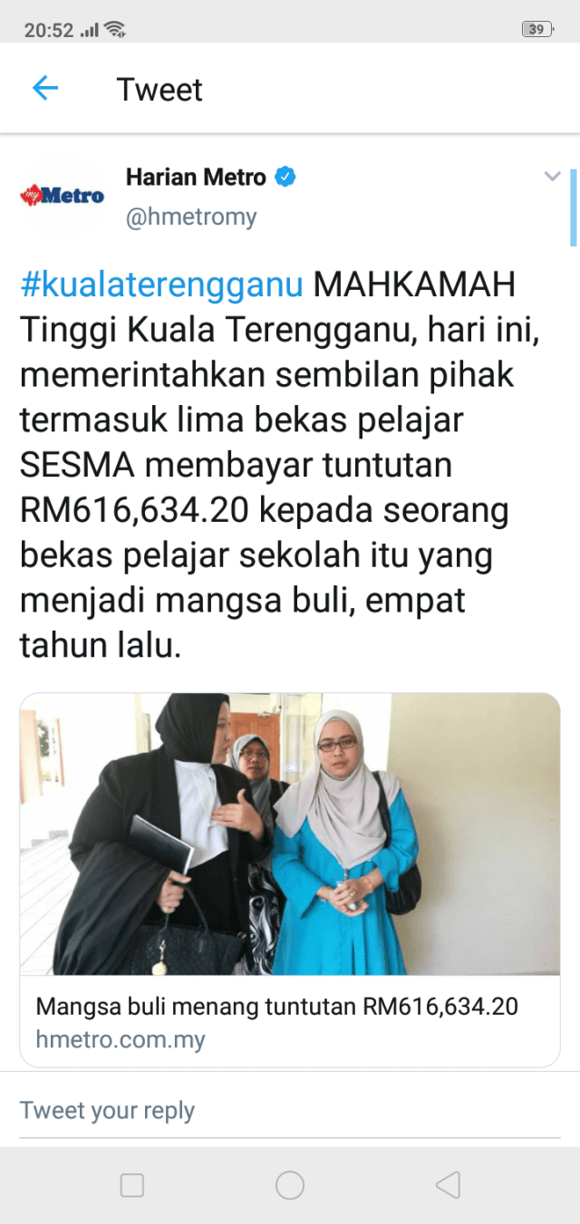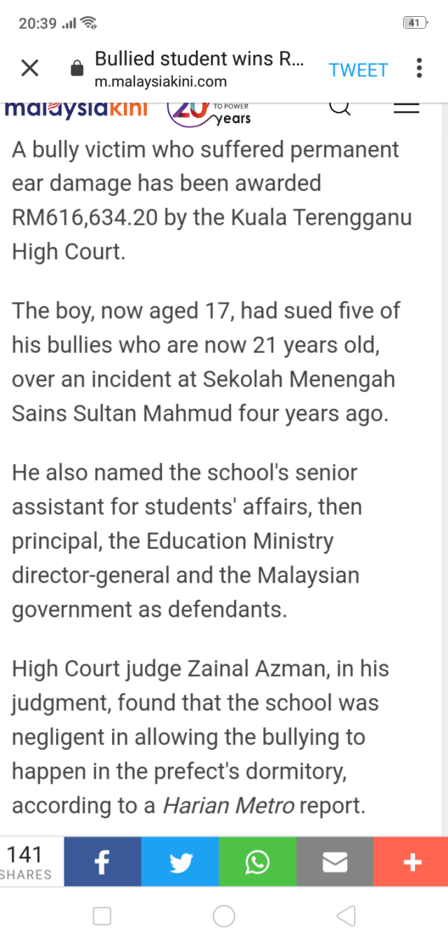 You bully, you pay! Student bullied at SMS Sultan Mahmud, Kuala Terengganu gets RM616,000…