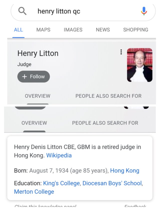 Henry Litton (列顕倫)* QC was the Judge of the highest Court in Hong Kong. He retired in 2015.