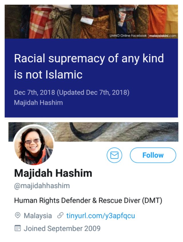 Majidah Hashim, Sisters in Islam (SIS): Racial superiority of any kind is Islamic.