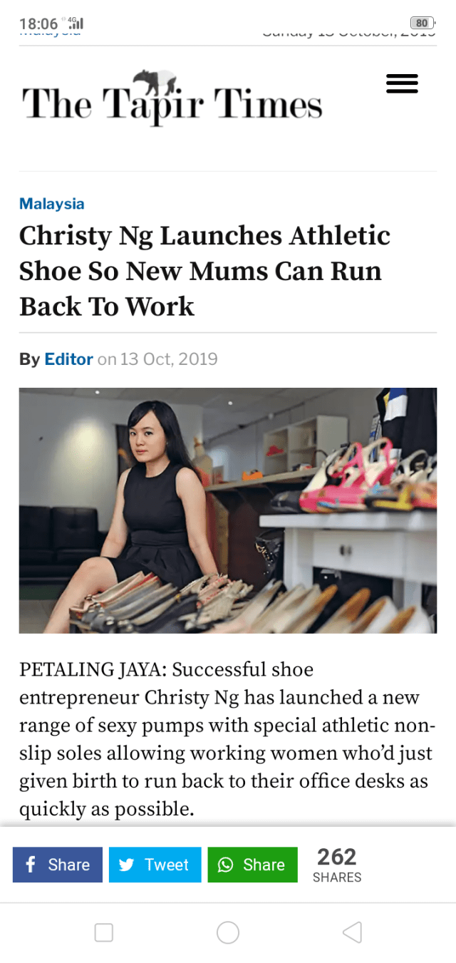 Fake News: Christy Ng, who has received flak for her view of the 90-day maternity leave for women, launches shoe for new mothers…