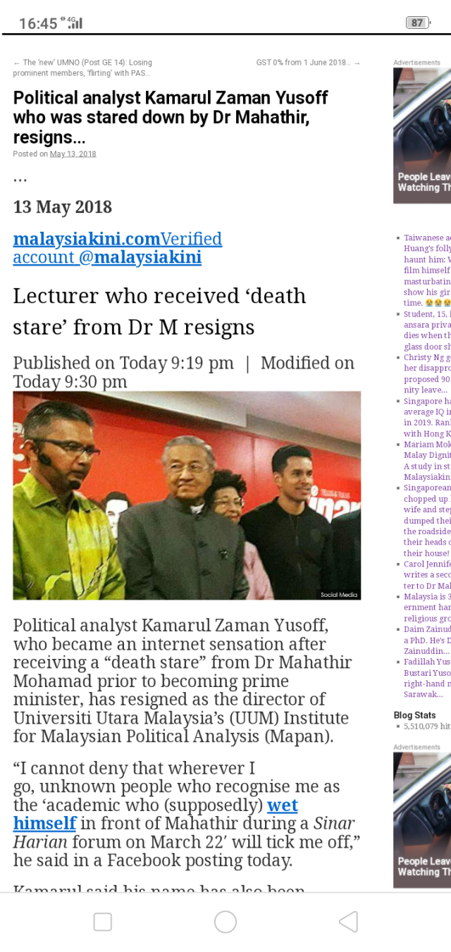 Pingback: Kamarul Zaman Yusoff, who received a “death stare” from Dr Mahathir, is banned by UUM from posting political material on his social media accounts… | weehingthong